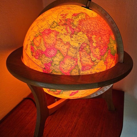 Sagerud globus , med flisa på kartet. Spesiell utgave