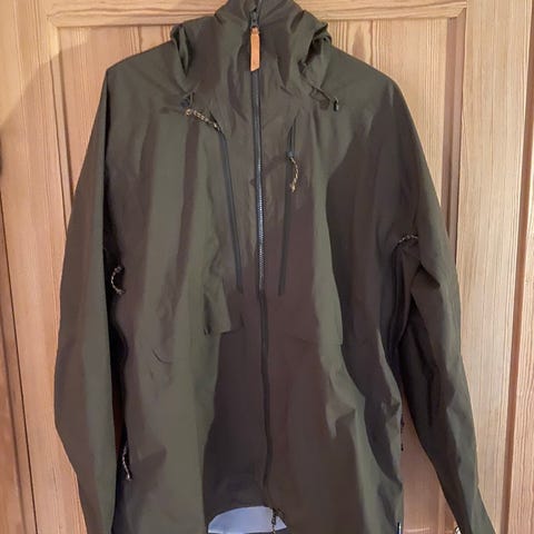 Fjällräven Keb Eco-Shell Jakke i størrelse L, farge grønn. Jakken er laget av Eco-Shell materiale og har hette, glidelås foran, samt flere lommer. Designet for å gi beskyttelse mot værforhold og godt egnet for utendørs bruk. Den trenger nok snart en runde impregnering, men er fortsatt flott og god skalljakke til både skiturer og skogsturer. Nypris: NOK 5999,-