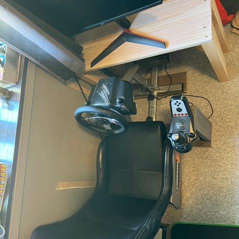 Selges på grund av oppgradering. Måte fjerne noen klistremerker og teip på rattbasen og pedalene.