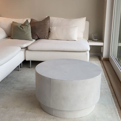 Pent brukt salongbord/stuebord i lys fin tren med glassplate som overflate. Det er noen små skraper på glassplaten, men som nesten ikke synes.