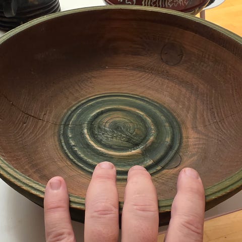 Håndlaget ølbolle - skål med et dekorativt sirkulært mønster i midten. Skålen har vakker håndmalt mønster. Passer til dekorasjon eller lett bruk.