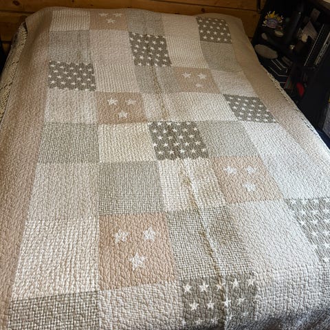 Størrelse: 280x 250 Passer til dobbeltseng (se bilde for passform). #sengeteppe #soverom #interiør #rød #tekstil #hjem #jul #seng #bruktfunn #volanger #pledd