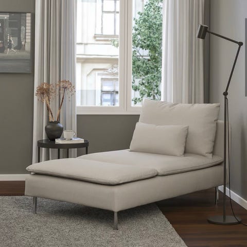 Sjeselongen er en del av en modulbasert serie fra Ikea. Kan utvides med andre moduler eller brukes alene som den er. Armlener kan også kjøpes på Ikea, hvis man ønsker det. Selges fortsatt trekk i denne fargen. Man kan også kjøpe trekk i mange andre farger, hvis man ønsker å variere litt.