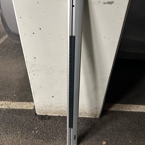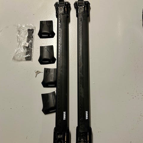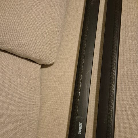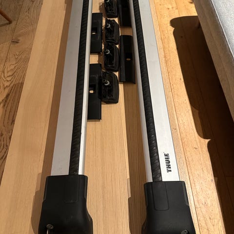 Thule WingBar Edge. Takstativet er laget i slitesterkt materiale og inkluderer monteringsutstyr som stropp og festedeler. Passer for montering på biler med lav profil tak.