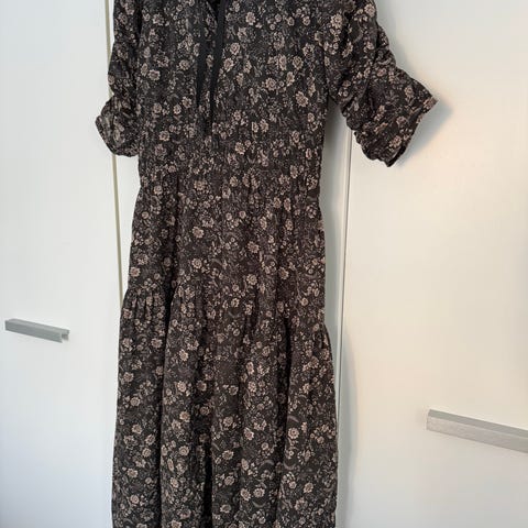 MISSMAYA Andre kjoler i sort farge, laget av bomull. Størrelse M, designet for kvinner. Kjolen har lange ermer og knappelukking foran, med broderte detaljer i stoffet.