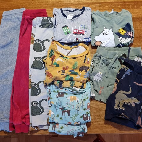 Name it barneklær for gutt i størrelse 110 med flerfarget design. Inneholder ulike plagg egnet for barn i denne størrelsen. Ja masse forskjellig alt er nytt stort sett, noe er brukt lite.