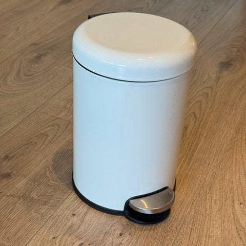 bleiebøtte i hvit farge. Egnet for hygienisk oppbevaring av brukte bleier.