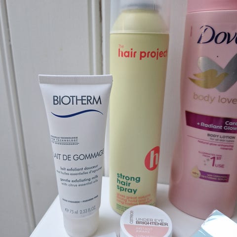 Sminken, bodylotion og ansiktskrem er testet/noe brukt. Må hentes.