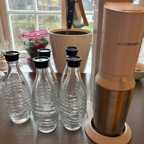SodaStream kullsyremaskin med flasker og smakstilsetninger