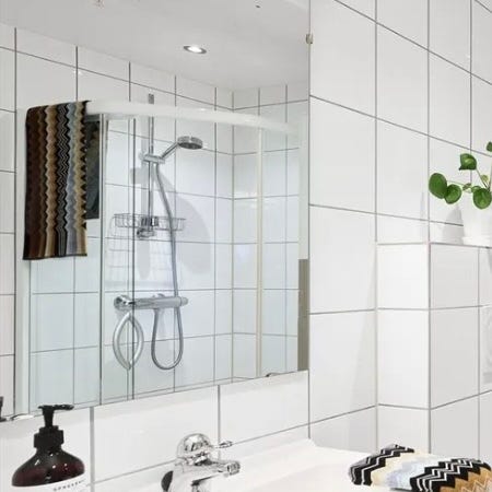 Speil med rektangulær form. Brukt på bad, men kan brukes på rom eller i gang. Må hentes. Noen få bruksmerker