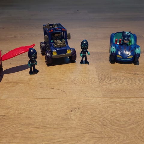 Diverse plastelina-leker og -former, samt to små gummiduker (til å leke med plastelina oppå, for å beskytte bordet). Plastelina (selve deigen) medfølger ikke, og jeg kan ikke garantere at det er komplette sett / deler. Men det er nok til at det er timesvis med moro for små barn (gutta mine har vokst fra det).