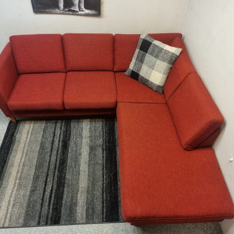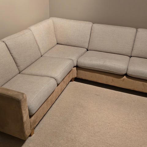 Den har litt kaffeflekker på noen av putene. Trekket kan tas av og vaskes.