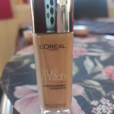 L'Oréal True Match flytende foundation i brun nyanse. Produktet kommer i en pumpeflaske og er beregnet for bruk som sminke for ansiktet.
