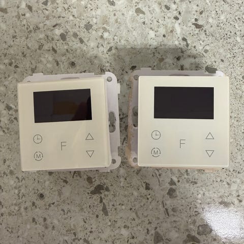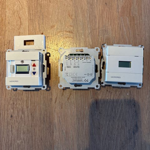 Namron termostat, innebygget føler og medfølgende gulvføler.