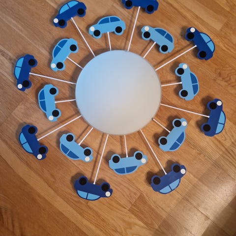 Tøff taklampe med Biltema til barnerommet.