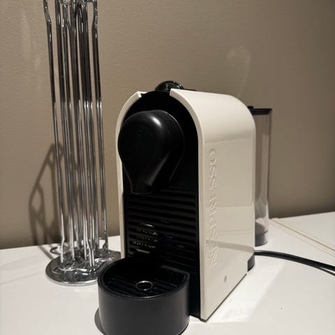 Nespresso Essenza Mini kapselkaffemaskin i svart farge. Kompakt design med enkel betjening for kaffebrygging med Nespresso-kapsler.
