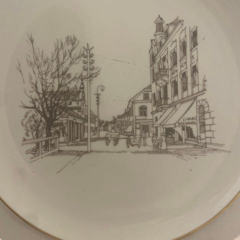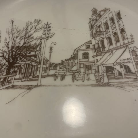 Selger platter fra Fredrikstad- lagd av Porsgrunn porselen. Av kunstner Ole Jacob Ihlebæk. Har 5 stk, pris pr stk. Diameter 17,5 cm. Sender
