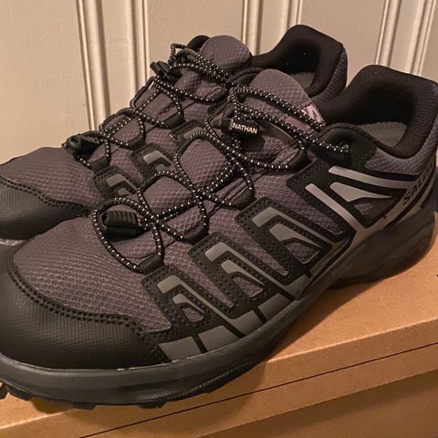 Salomon sneakers joggesko i størrelse 43. Skoene har en mørk farge med detaljer i lysere nyanser. Egnet for bruk som joggesko eller til hverdagsbruk.