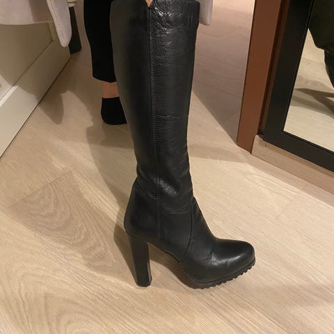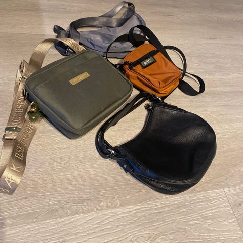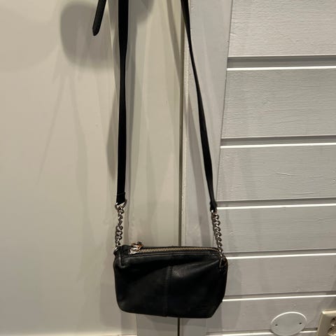 Veske i skinn og lerret. To i en :) Fargen er lysere enn det som vises på bildet. Mål: 40 x 35