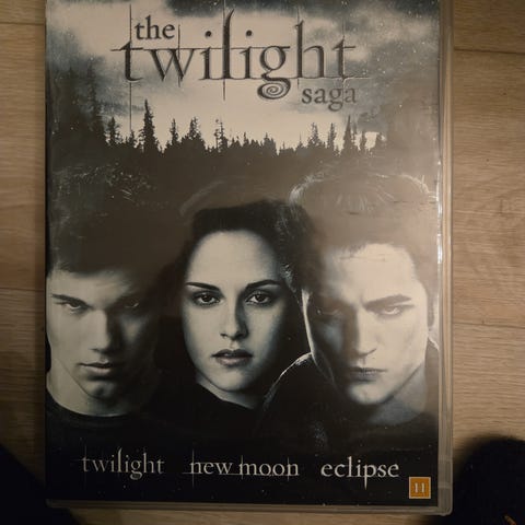 The Twilight Saga DVD inneholder de tre første filmene i serien: The Twilight, New Moon og Eclipse. DVD-en har norsk tekst og er egnet for seere fra 11 år og oppover.