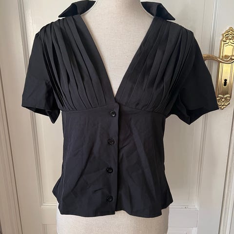 Nydelig hvit bluse i 100% bomull. Str. M. Lange ermer og v/-hals. Helt ny og ubrukt.