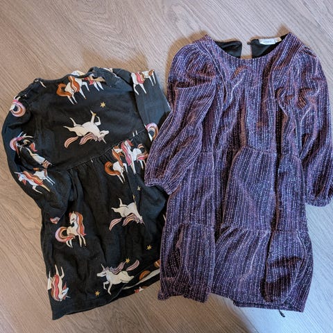 Regnklær, pysjamaser, joggebukser, votter, 3 fleecebukser og en fleecejakke.