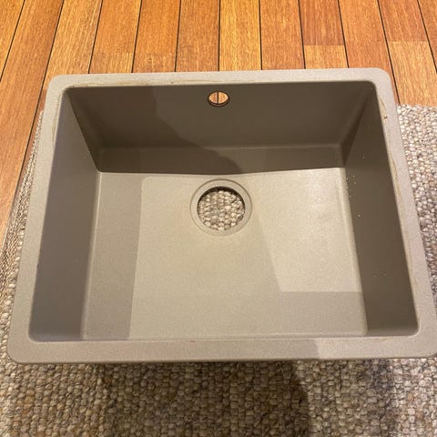 Dobbel vask i rustfritt stål med to kummer og integrert avrenningsbrett. Armatur er installert og medfølger vasken. Vasken har standard avløpssystem og er egnet for kjøkkeninstallasjon. Medfølger avløpsrør som vist på bildene. Vasken har merker etter bruk, men er ellers i god stand.