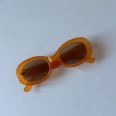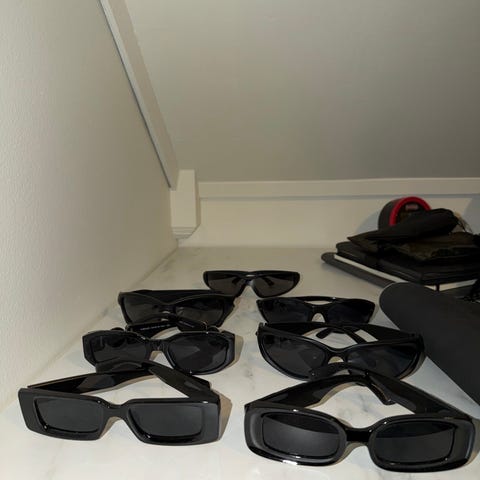 Solbriller for unisex bruk. Glassene har en klassisk pilotform med mørke linser.
