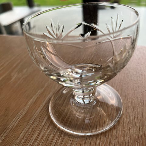 Hadeland Glassverk Finn Hetvin glass med en kapasitet på 7 cl. Designet med femkantede karakteristiske mønstre som gir et estetisk preg. Kombinasjon av en solid stamme og en romslig bolle gir et klassisk utseende. Egnet for bruk til hverdags og fest.
