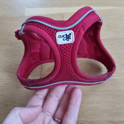 Selger en Curli hundesele i størrelse XS, Curli er et anerkjent merke kjent for høy kvalitet, god passform og komfort for hunden.