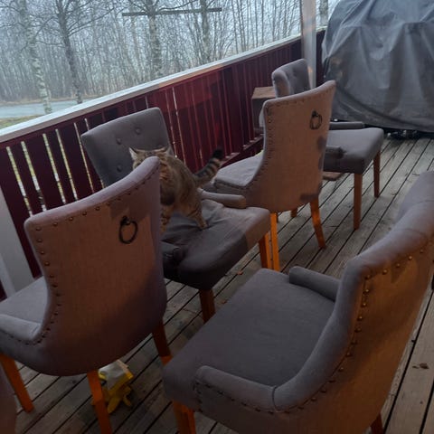 Stol med mye bruk igjen, fin å knekke ryggen på!