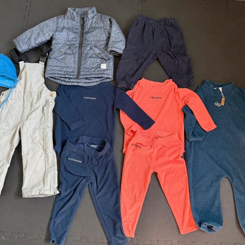 Praktisk og varm pakke perfekt for barnehagebruk eller utelek! Alt er brukt, men i god stand 👌