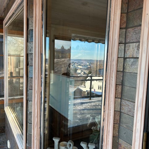 Vindu med 2-lags glass og treramme. Fastvindu med ventil i topp. 150x150cm.