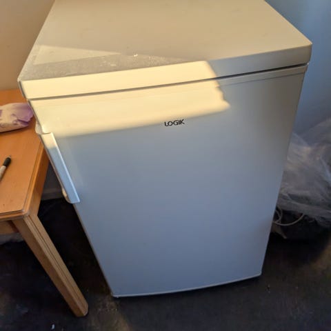 Logik Kjøleskap i hvit farge. Kompakt størrelse egnet for mindre rom eller som tilleggskjøleskap. Enkeldør med integrert håndtak. Passer for lagring av mat og drikke i hjemmet eller kontor.