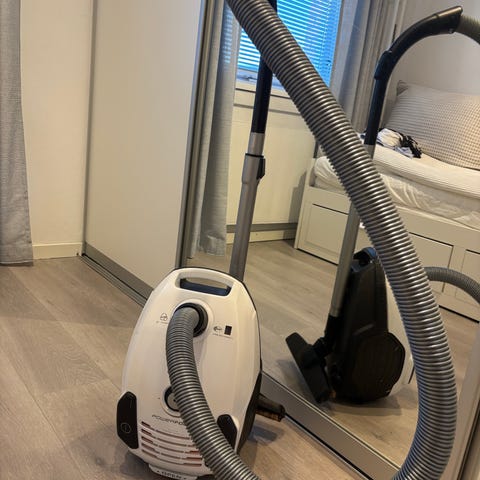 Obs støvsugeren er poseløs, tøm beholderen og støvsug videre! Brukt som en ekstra / reserve støvsuger noen få ganger.