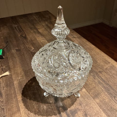 Selger en stor og tung krystallbolle med vakkert og intrikat slipt mønster.