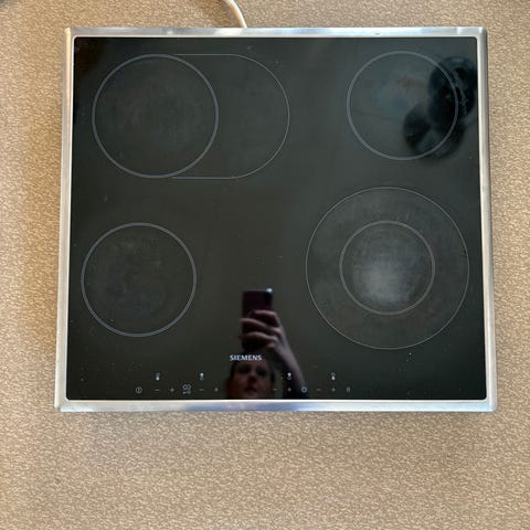 Keramisk kokeplate med fire kokeplater på totalt 6000w. Er koblet til 230v, men kan også kobles om til 400v.