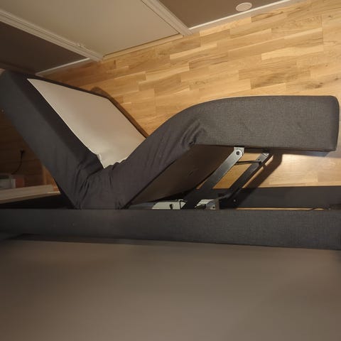 Meget pent brukt elektrisk justerbar enkeltseng 90 x 200 cm selges. Sengen kan justeres både i hode- og fotenden. Sengen er alltid brukt med overmadrass og fremstår meget pent brukt og uten flekker. Svært komfortabel og tykk madrass, Må hentes på Langhus.