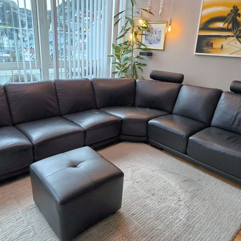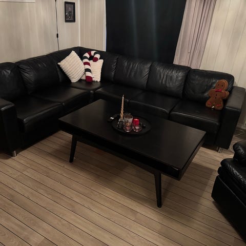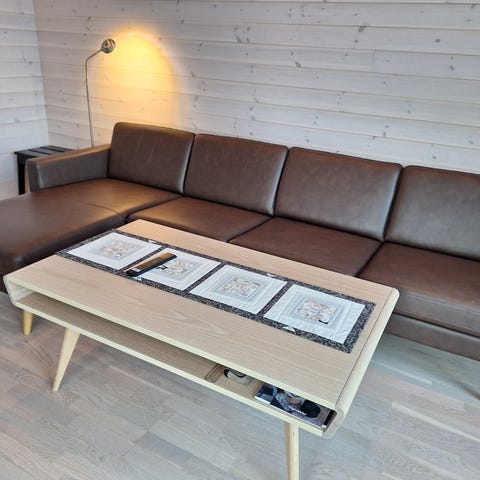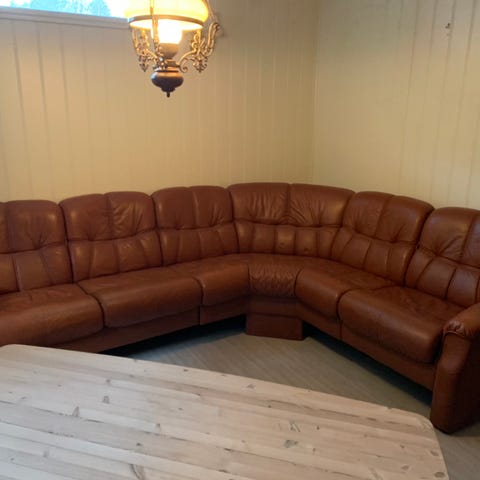 Hjørnesofa i skinn fra hjellegjerde selges.