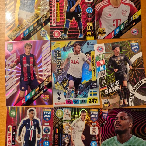 Har en gutt som vil selge noen fotballkort da han begynner å få ganske mange i samlingen sin.