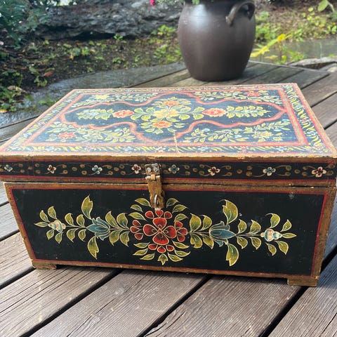 Vakker håndlaget Tine/oppbevaringsboks i never