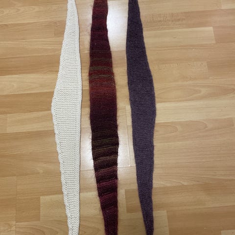 Selger et Sophie scarf - nystrikket sjal for 175,-kr.