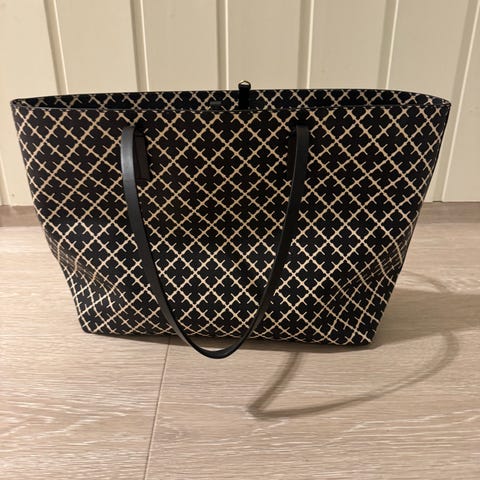 By Malene Birger dameveske laget i plastmateriale. Vesken har et bærehåndtak og flere indre lommer, inkludert en med glidelås. Mål på vesken er 57 x 35 x 22 cm stor modell.