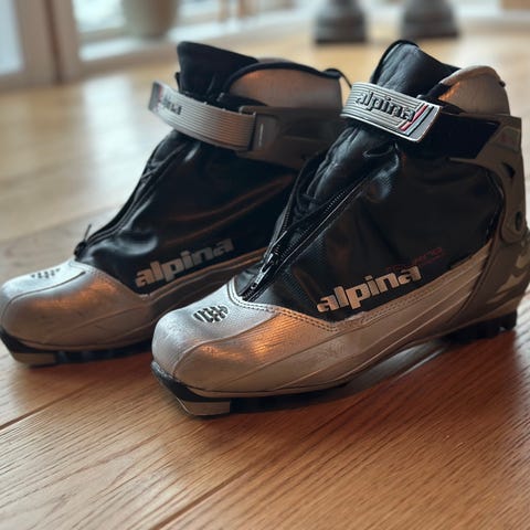 Selger et par synlig brukte Alpina jr combi sko i str 38. Venstre sko begynte å bli slitt på yttersiden. Stoppet slitasjen med blank silikon. Se ellers bilder. Kan sende, tror den går akkurat som liten pakke.