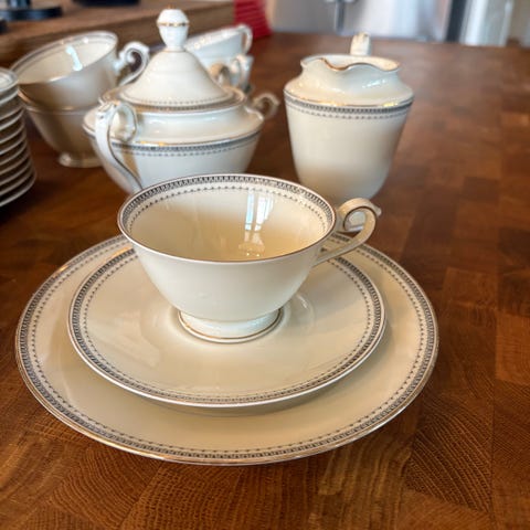 1 sukkerskål. Denne har et lite skår innvendig i skålen. Se bilde