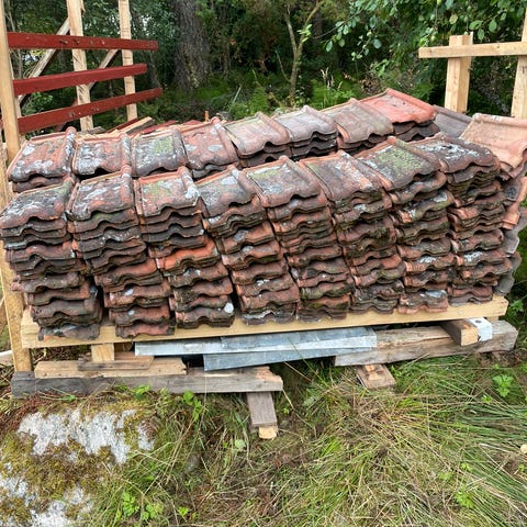 Ca 20kvm H. Panner 10kr pr stk. og ca 8 vingpanner høyre og venster. 50kr pr stk. Ca 10.stk på kvadraten. Bud.
