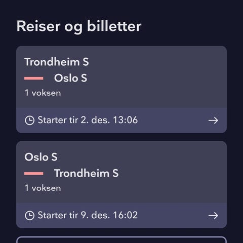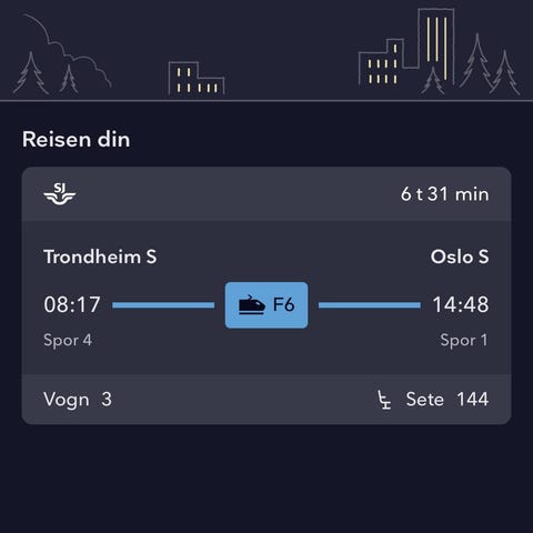 Tar fly heller så selger billett 09:52 Trondheim til Oslo S 16:48