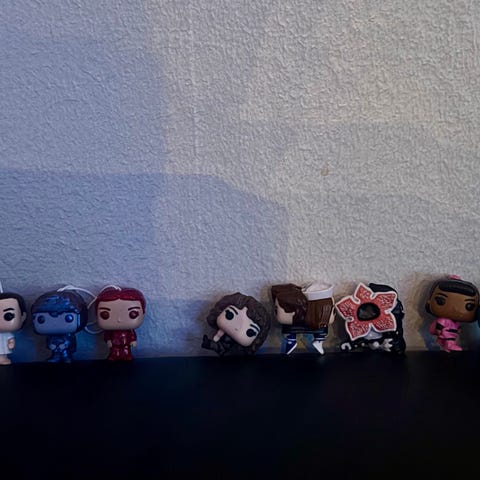 Samling av Funko Pop! figurer med ulike karakterer fra Stranger Things fra Kinder Joy kolleksjonen