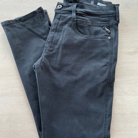 Replay jeans i grå farge, laget av bomull. Størrelse W34 i livet og L i lengde, designet for herre. Ikke mange skraper på disse jeansa! Kontakt hvis du har no spørsmål!