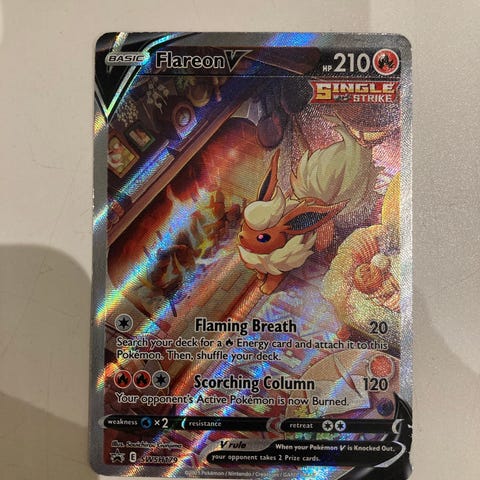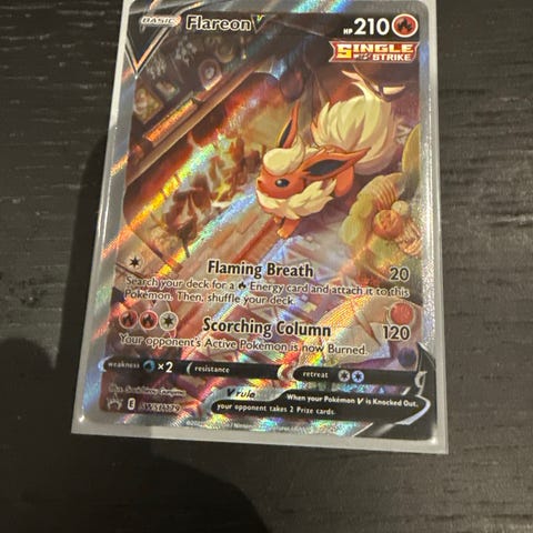 Jeg selger en Flareon V for 150 kroner. Har satt pris ut fra tilstand. Be gjerne om flere bilder. Jeg har også mye annet Pokemon til salgs, så ta gjerne en titt på mine andre annonser.